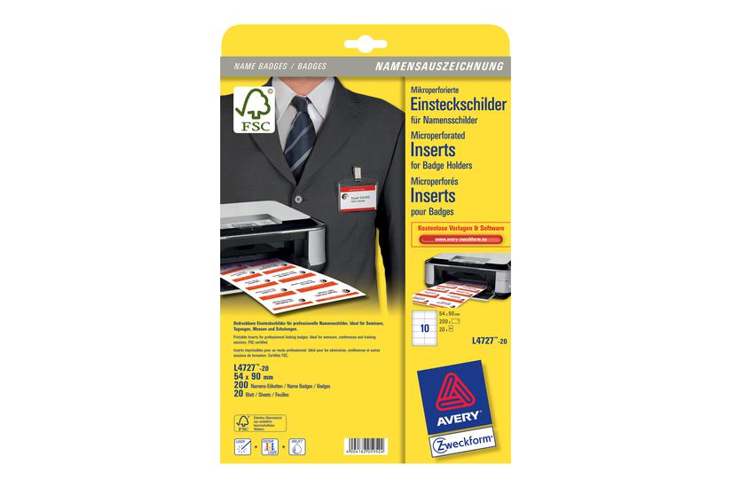 Technice.dk har fundet Avery Name Badges Printable inserts – Navneskiltkort – 200 kort – 54 x 90 mm – 190 g/m² fra Avery Dennison til 318.00 DKK i kategorien Kontor > Møde og præsentation > Udstillingssystemer og skilteholdere > Badgetilbehør hos Føniks Computer. Navneskiltkort Avery – Gør indtryk med stil og professionalismeOplev den ultimative løsning til navneskilte med Avery navneskiltkort. Med 200 kort i pakken får du masser af muligheder for, at skabe unikke og personlige navneskilte til enhver lejlighed.Det